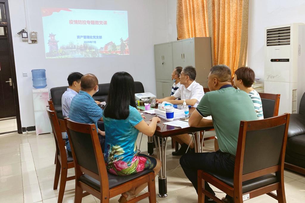 7月13日上午,资产管理处党支部召开专题组织生活会,围绕“让党旗始终高高飘扬——学校基层党组织常态化疫情防控‘四个一’行动”主题,党支部书记樊庆文同志讲授了“疫情防控彰显中国制度优势”专题微党课,学习了习近平总书记关于疫情防控的一系列重要讲话精神,对比其他国家的抗疫工作,分析了抗疫大考中彰显的制度优势。