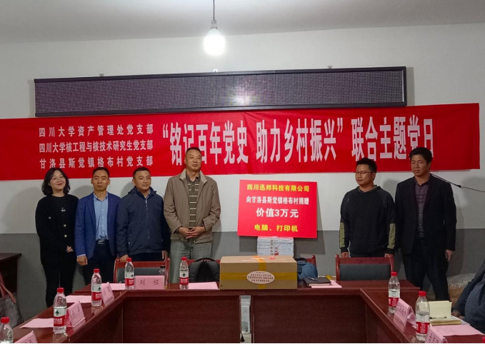 10月15日上午,三个支部在格布村党群服务中心进行了座谈交流会。与会党员集中学习了习近平总书记在庆祝中国共产党成立100周年大会上的讲话精神,围绕“如何实现乡村振兴”进行了深入交流探讨,举行了四川迅邦科技有限公司助力乡村振兴电脑、打印机捐赠仪式。