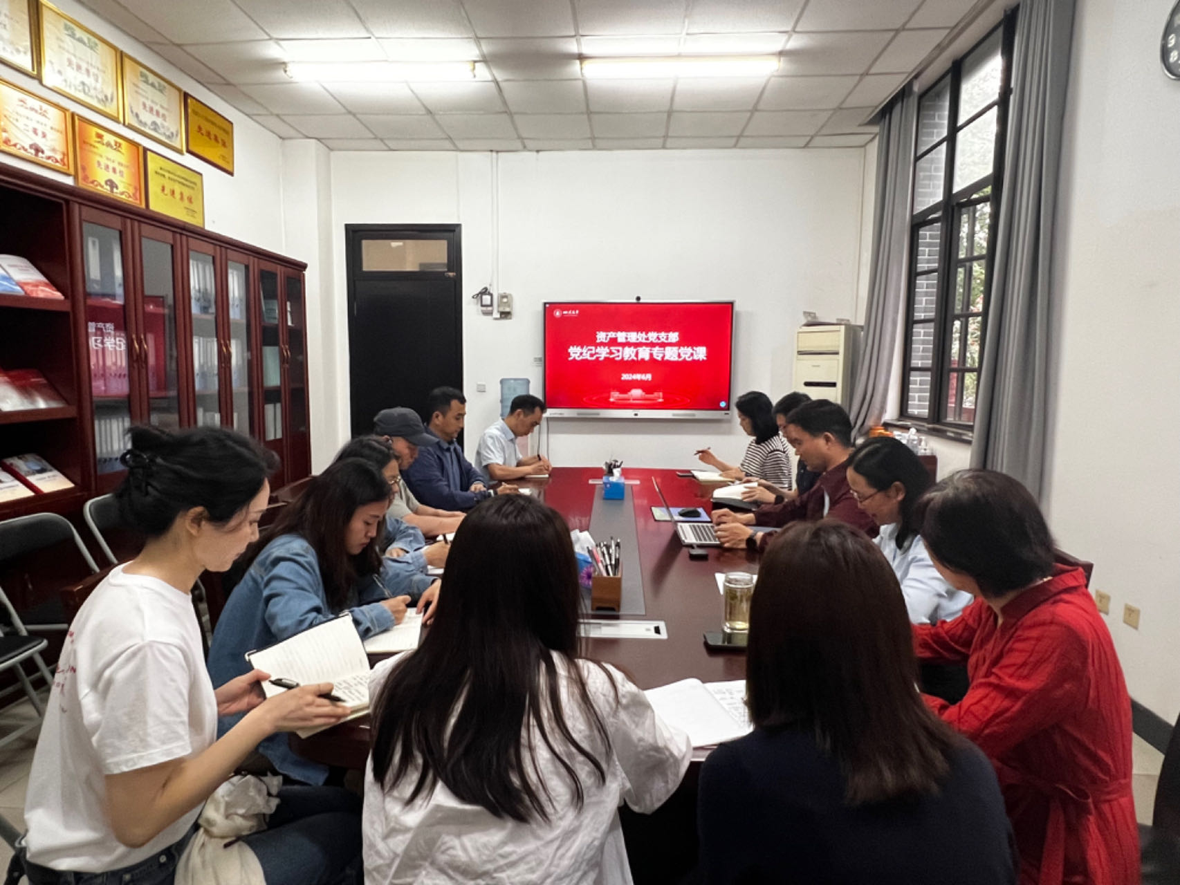 为持续推进党纪学习教育走深走实,增强党员廉洁自律意识,6月7日,资产管理处党支部开展了党纪学习教育主题党日暨专题授课活动,支部全体党员参加。党支部书记颜锦江为全体党员讲授《学纪 知纪 明纪 守纪》专题党课。