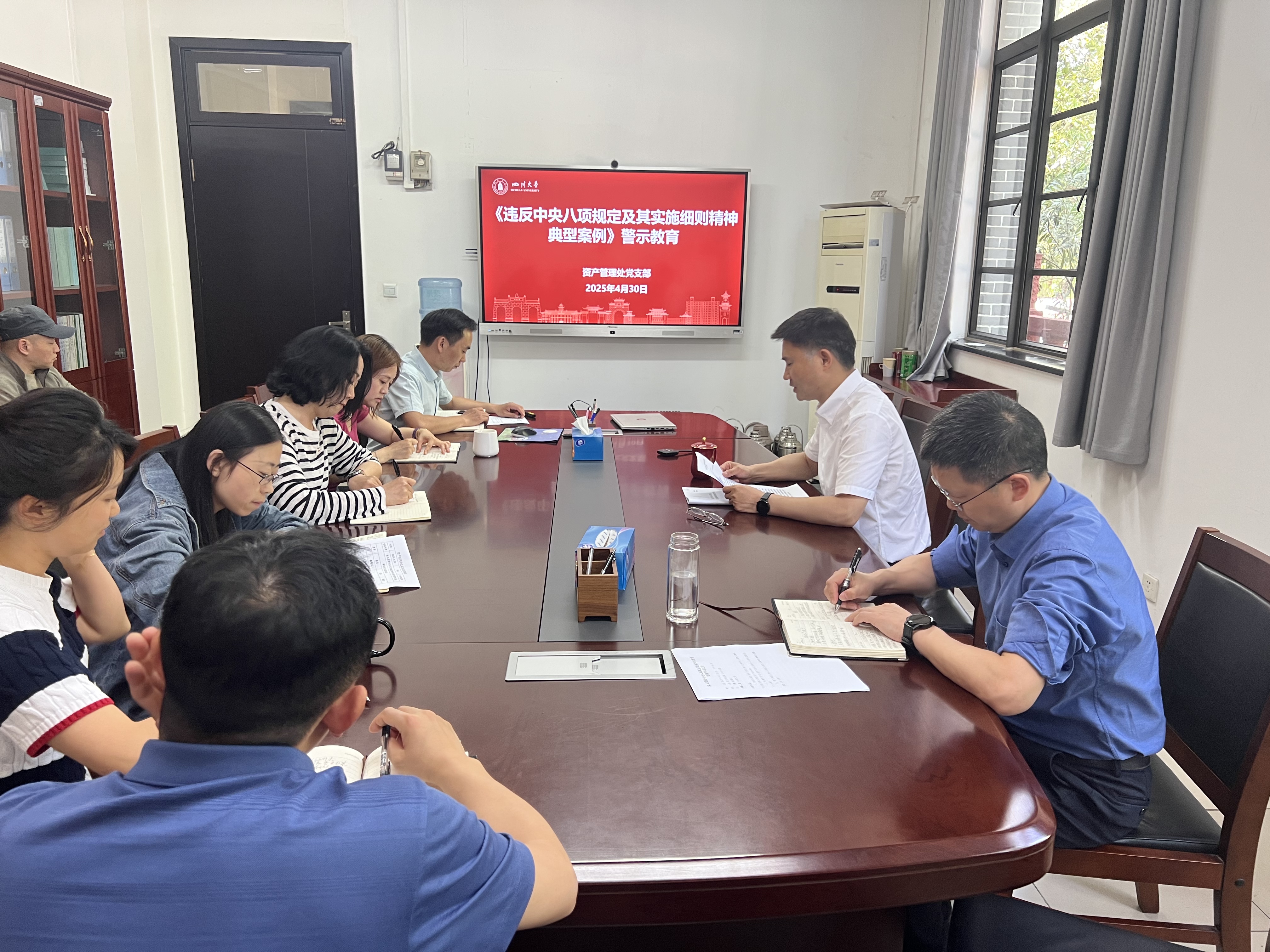 4月30日下午,资产管理处党支部召开专题学习会,围绕违反中央八项规定精神的典型案例开展警示教育。党支部书记颜锦江主持会议