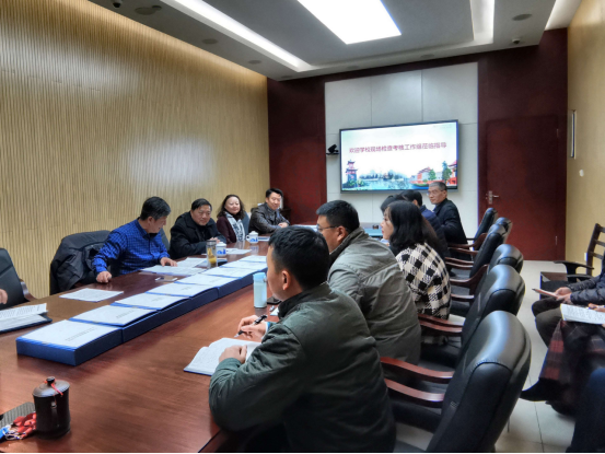 国资处党支部书记樊庆文处长从年度工作情况、特色亮点工作、不足和改进措施等方面向现场检查考核工作组作了汇报。考核工作组现场查阅了相关档案资料,并与国资处工作人员进行了座谈和个别谈话。