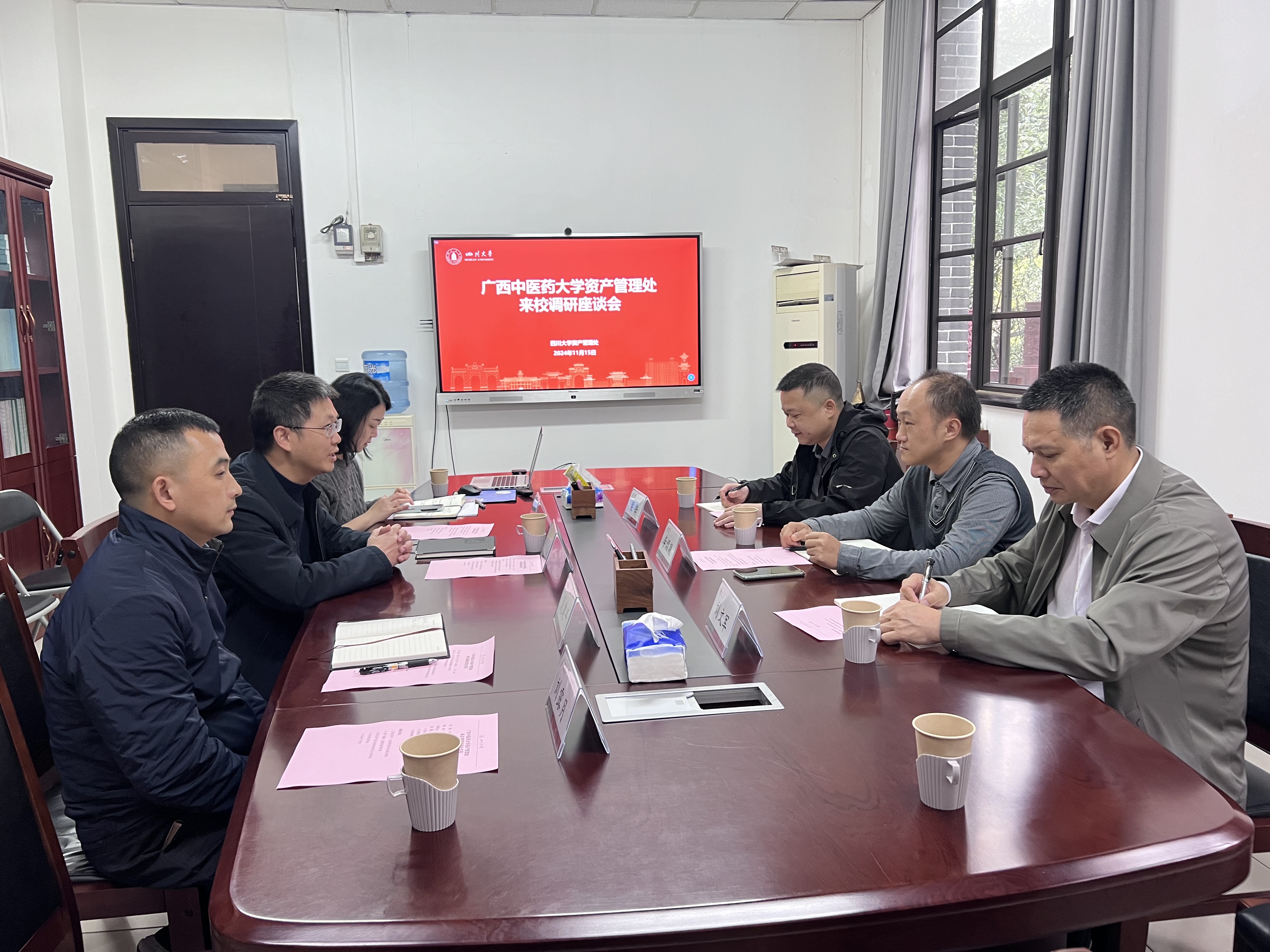 11月15日,广西中医药大学资产管理处副处长李熠毅一行到我处调研交流,副处长李成鑫主持调研座谈会,公房管理科和产权科相关负责人参加交流。