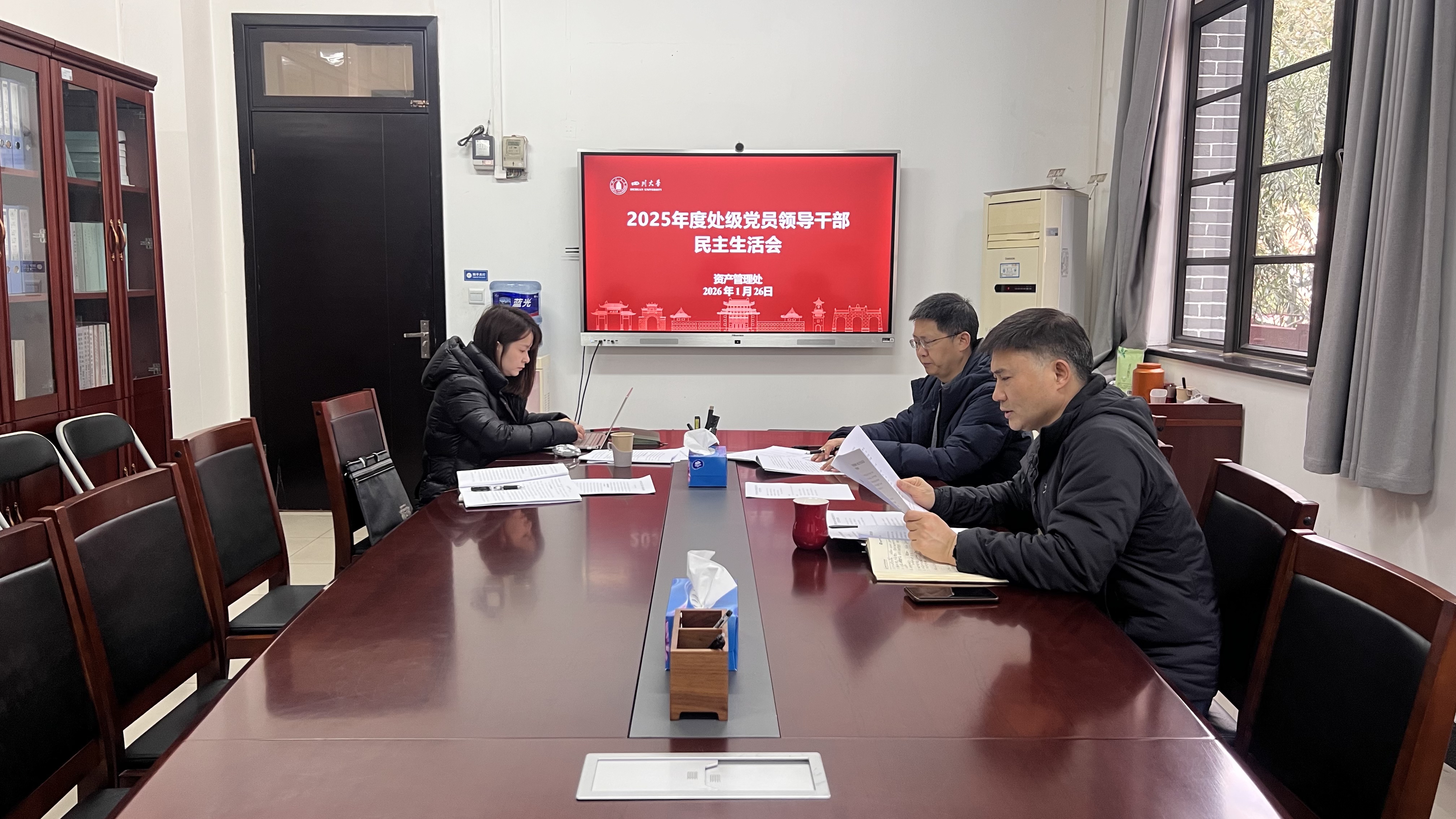 2026年1月26日下午,资产管理处领导班子召开2025年度民主生活会,校党委组织部黄鑫出席会议,会议由资产管理处党支部书记、处长颜锦江主持。