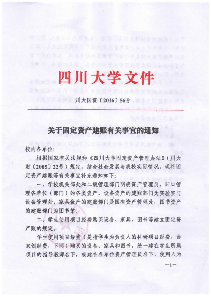 关于固定资产建账有关事宜的通知
